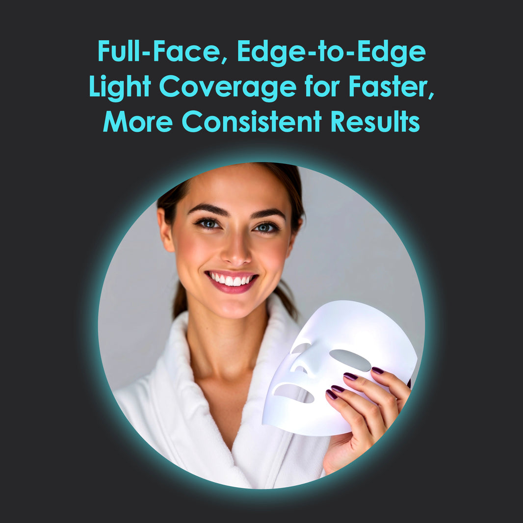 A flexible silicone mask that contours to your face, packed with a dense bulb array for uninterrupted light therapy.